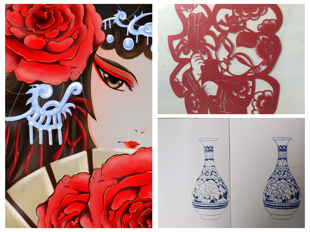 本次活动由16年12月中旬开始,至17年1月初结束,由绘画传统、拍摄传统、书写传统、编织传统、剪刻传统五个部分组成,共收集了学生作品近百件。经过筛选,共选出16件优秀作品。其中,1401班汪冉同学利用日常手绘水彩画出的《舞狮》色彩绚丽、栩栩如生;1301班杨品琦同学利用所学的PS软件绘制出的作品《古装》,人物典雅庄重;1301班崔雨菡同学的剪纸作品《福娃》,充溢着孩童庆贺新春佳节的浓郁气氛……。