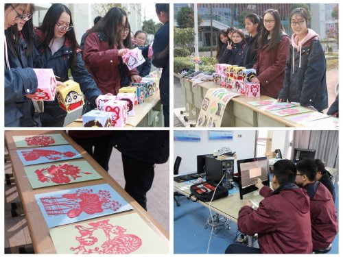 12月13日,作为学校传统技能特长的汉录比赛为社团展示周拉开了序幕。比赛中,“唰唰唰”敲击键盘的声音,不仅体现了选手们的沉着冷静,更彰显了他们的高水平。14日中午,展示类社团在学生宿舍门口摆起了“小摊”,中国传统剪纸、十字绣摆件、手工编织的围巾和各种折纸吸引了许多同学前来围观。19日,表演类社团在体育馆上演了一幕精彩绝伦的视觉盛宴。在礼仪社的舞台秀展示中,同学们以青春洋溢的笑脸,优雅文明的姿态,昂扬精神的风貌,呈现出“知礼、用礼、行礼”的风采,将“显职业礼仪,展文明风采”的精神展现得淋漓尽致;卡通动漫社的社员们自制道具,精心装扮,结合动感活力的舞蹈,上演了一出精彩的舞台剧;竞技类社团篮球社、羽毛球社、乒乓球社、3D拼图社、ERP社等则通过各种形式的比赛,为同学们提供了一个展示和挑战的舞台;此外,旅游协会、心理社、映像社等文艺类社团则通过展板海报的形式展示了社团活动的精彩剪影。