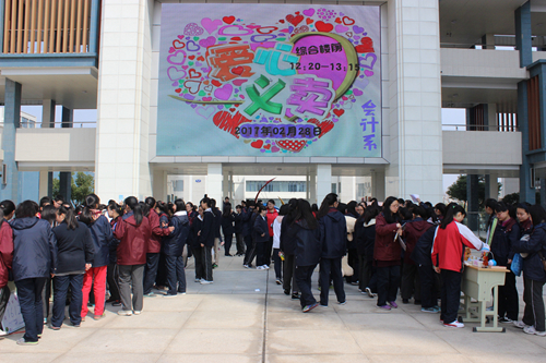 阳光明媚,春意渐浓。2月28日中午,我校会计系学生会在学校综合楼前举行了一场主题为“情系福利院,义卖献爱心”的活动,吸引了全校师生的目光。
