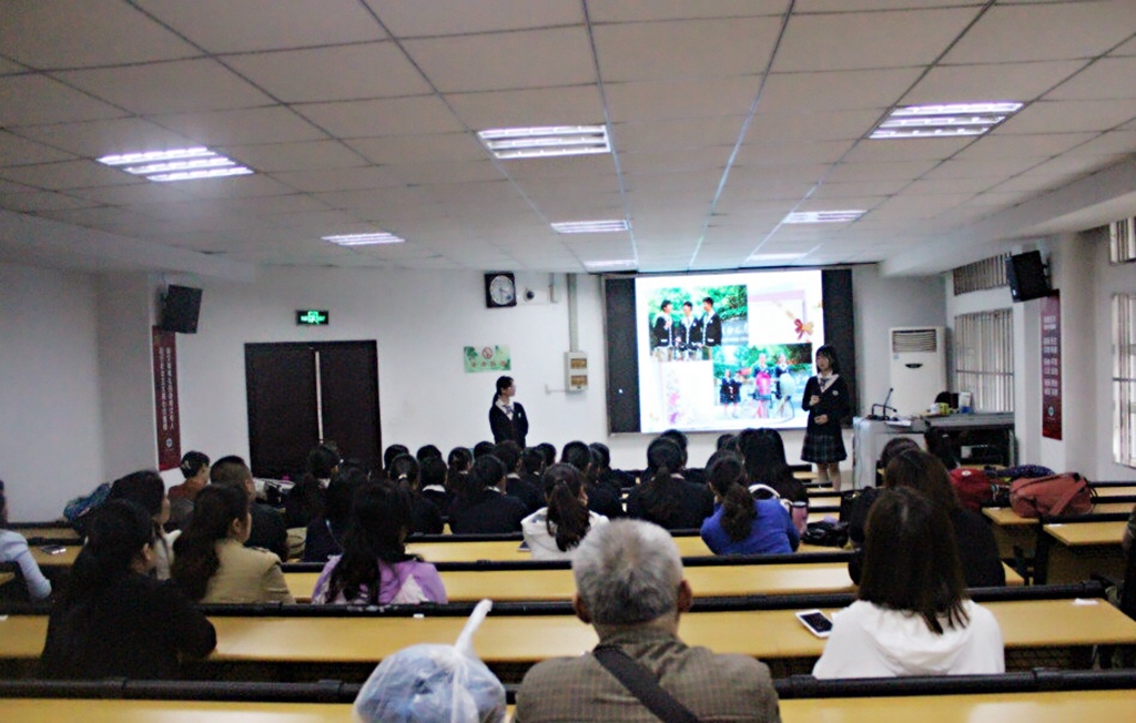 15涉旅2班的班会以“争当‘书’女”为主题,以多种形式展现书的魅力。班会课上,同学们分享了若干本不同领域的好书,并集体朗读名著片断《傲慢与偏见》,并通过情景剧表演——“书女旅行社招聘”讲述了三个性格迥异的求职者面试过程中发生的故事。最终热爱读书的女孩以优异的综合素养受到面试官的青睐。班会在三位同学小语种朗诵中结束,给人留下无限回味与遐想。班会课后,学工部黄荣桂副主任进行了点评。他认为此次班会课准备充分,活动形式多样,全员参与度高,格调较高。他希望在今后的班会课内容安排上注意详略得当,突出重点,使主题更清晰。