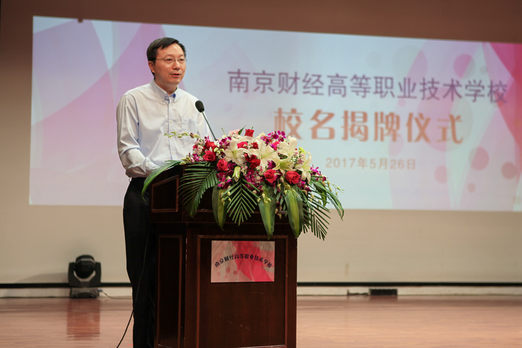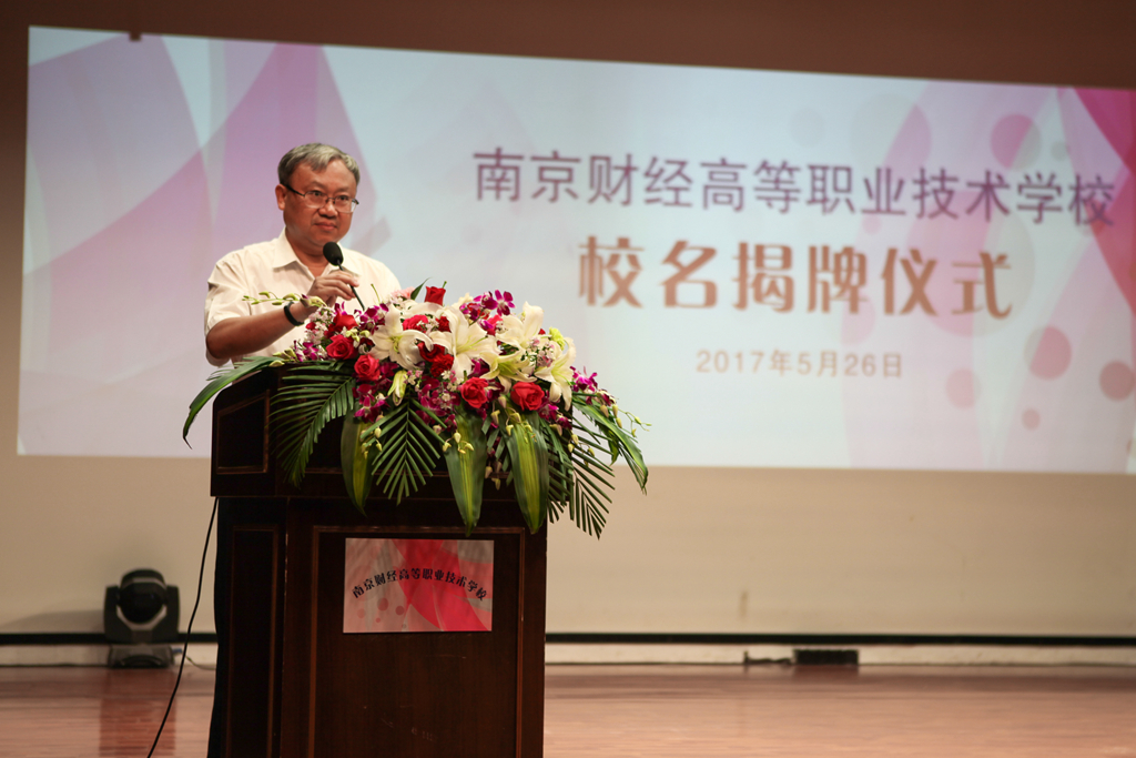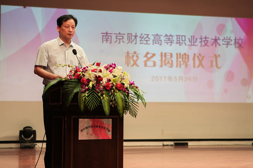 南京市委教育工委张生书记表示南京财经高等职业技术学校的正式挂牌对于南京职业教育来说是一个非常值得纪念的日子,并代表南京市教育局向学校的广大教职员工、同学们表示热烈的祝贺。他回顾了南京职业教育在近年来取得的辉煌成绩,指出南京职业教育将聚焦“质量、开放、融合”主题,深化改革创新,提升服务质量,为建成适应南京经济发展方式转变、产业结构升级需求的具有世界水准和南京特色的现代职教体系而努力。他希望学校要抓住机遇,全面贯彻党的教育方针,秉承优秀传统,坚持开放融合、敢于担当的精神,在两校优异的办学成绩之上,再创辉煌。