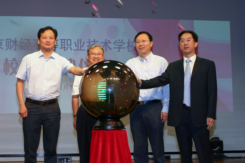 5月26日上午9点,南京财经高等职业技术学校与原南京市女子中等专业学校合并、更名为南京财经高等职业技术学校的揭牌仪式在学校莫愁路校区四楼礼堂举行。南京市委教育工委书记张生、江苏联合职业技术学院党委副书记、纪委书记沈世江出席仪式并致辞、揭牌。南京市教育局潘东标副局长宣读市政府批文。同时出席揭牌仪式的还有市教育局有关处室领导、合作办学单位澳大利亚WAIFS学院与莫道克大学领导、兄弟学校(单位)代表、校企合作单位代表以及家长代表和师生代表。