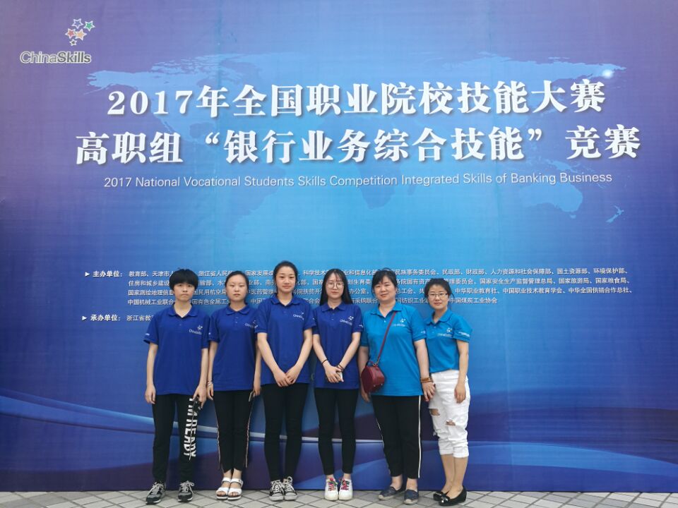 6月1日到2日,2017年全国职业院校技能大赛高职组银行业务综合技能大赛在浙江金融职业学院召开。据了解,本次比赛是目前国内级别最高的大学生银行业务技能赛,共有来自全国28个省、自治区、直辖市的52支代表队共208名选手参赛。大赛分“银行手工技能”和“银行柜面业务”两大项目。经过三个半小时的激烈角逐,我校金融系陈阳主任带领的王凌婷、王晓璐、邵韦佳、林悦妍四名同学,在戴颖副主任和金敏老师的指导下,不畏强手,团结拼搏,凭借过硬的专业知识、标准的操作技能以及稳定的发挥,荣获团体三等奖。