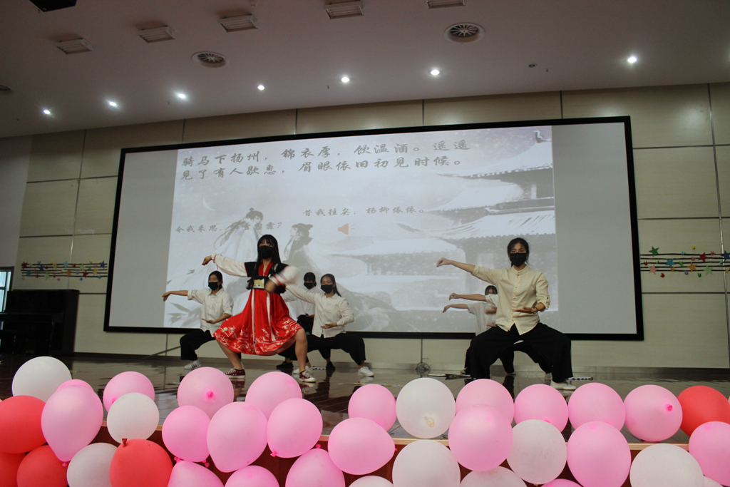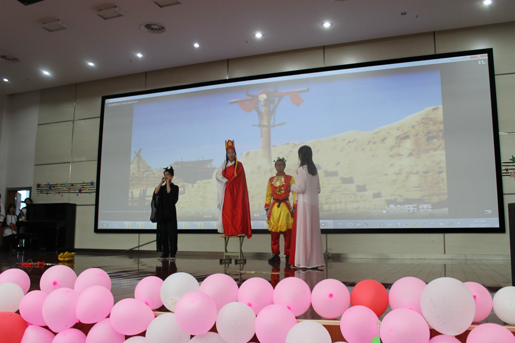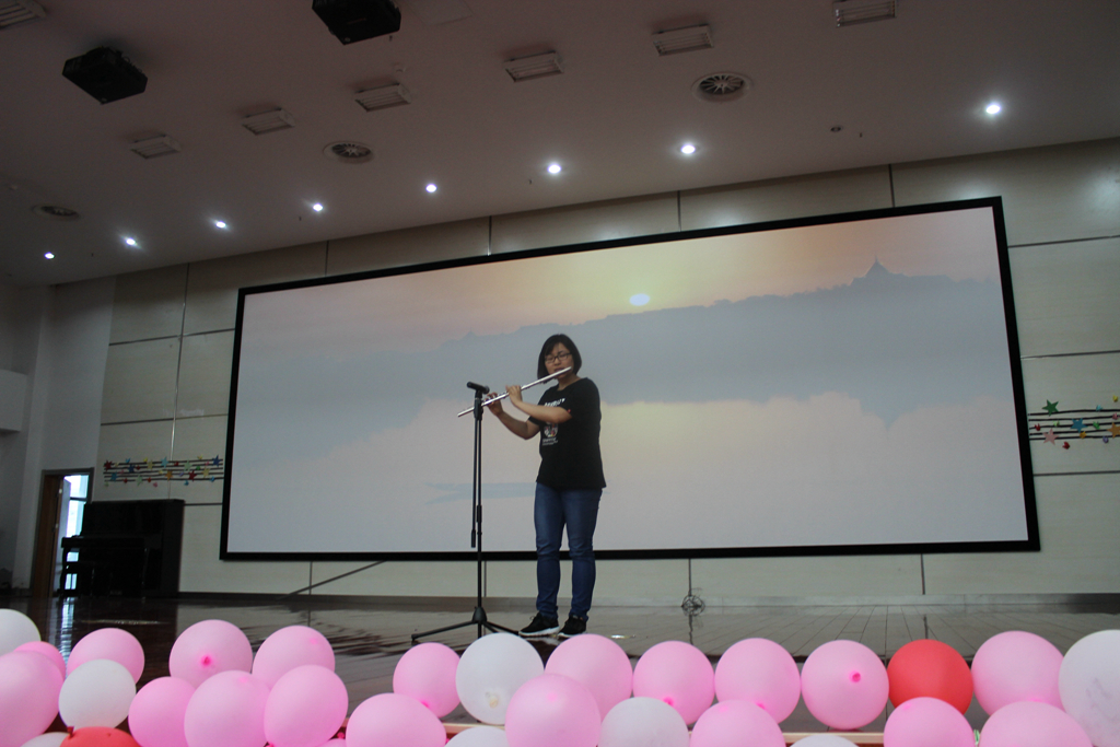社团演出不仅给每位参加社团的同学提供了展示的平台,同时也让有才能的老师和同学们大显身手。基础教学部的钱万万老师就用长笛倾情演绎了《夕阳箫鼓》。悠扬的笛声配合着琵琶、古筝、二胡合奏的《棠梨煎雪》,让大家感受到了西洋乐器与中国民乐的交汇融合;暖心手作社的徐玥同学利用视频展示了版画的制作过程,还将印制好的版画送给了现场观看的领导和老师们,完美地展现了美术创作功底,传承了艺术精神;表演舞台剧《大话西游》的同学们将人物的心理揣摩的十分到位,表演亦十分传神,爆笑声和鼓掌声响彻全场……。