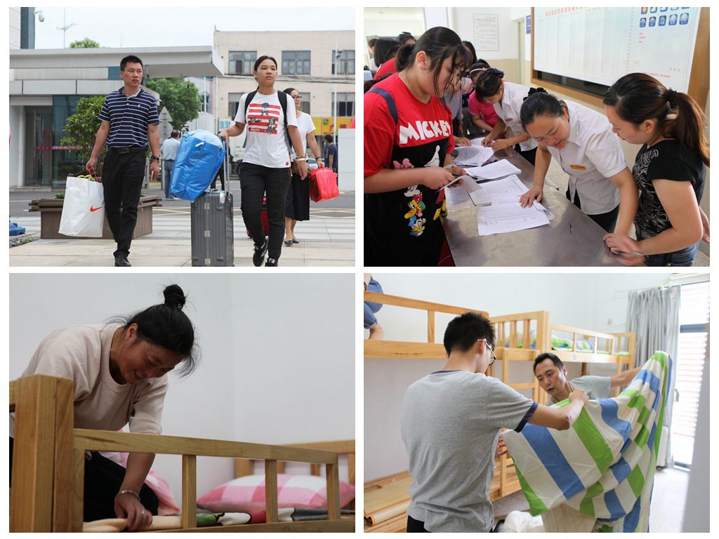9月9日,我校迎来了2017级新生报到入学的第一天。在学校各个系部的配合与协作下,新生报到工作在紧张与忙碌中有序进行:校园内,身着制服的安保人员引导家长的车辆有序进入校园,佩戴绶带的学生志愿者们在路口热心指路;宿舍门口,信息艺术、金融、会计和现代服务四个系的报到处,签到、领取校园卡等工作有序展开;宿舍楼内,宿管老师仔细核对学生信息,签发入宿用品;教室里,班主任老师们耐心地等待新生,收缴资料,指导填写相关信息……。与此同时,学校的地铁站大巴车接驳工作也如火如荼地进行,校团委安排了学生干部志愿者在地铁站引导,每辆大巴车上配有一名跟车老师,以流水发车的形式往返于地铁一号线药科大学地铁站和江宁校区之间。忙碌的身影穿梭在校园内外的每一个角落。