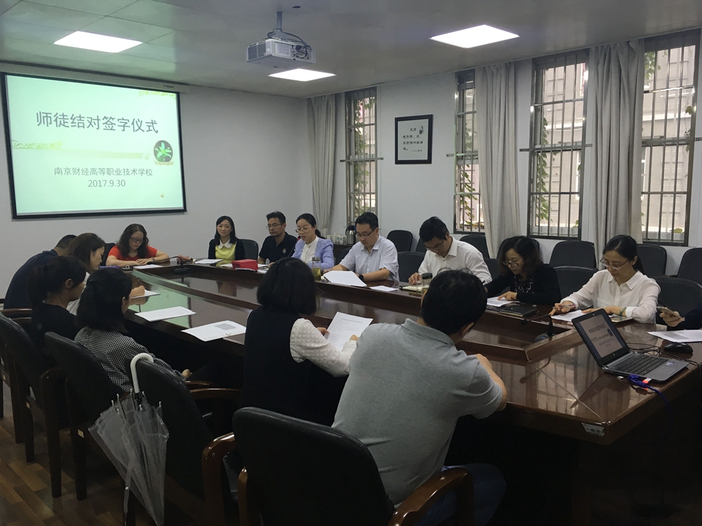 9月30日下午3点,我校在莫愁路校区行政楼2楼会议室举行了2017年新进教师师徒结对仪式。7位新入职的年轻教师与12位骨干教师结为师徒关系。学校姚峰校长(兼书记)、刘辉副校长、陈浩副校长出席了本次活动。教学科研部贾凌燕副主任主持了此次活动。