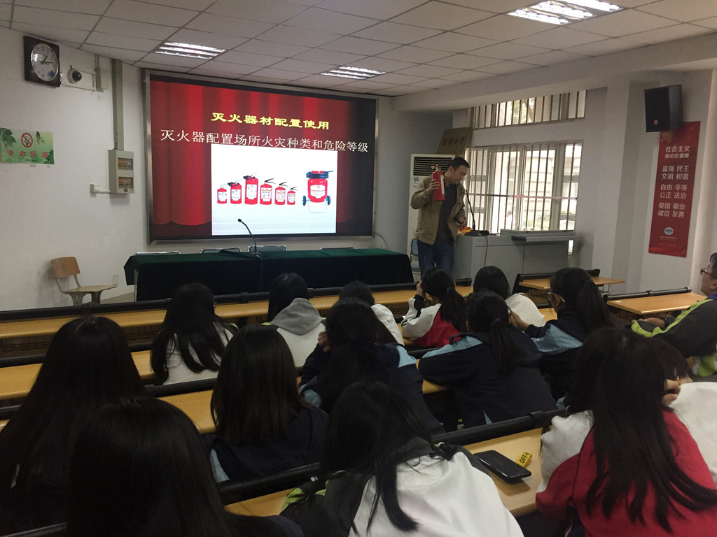 为进一步宣传普及消防安全知识,提高学生的消防安全意识和火灾防范能力,10月19日,我校后勤工作部协同学生工作部在莫愁路校区阶梯教室内组织了一场住宿生消防安全培训。