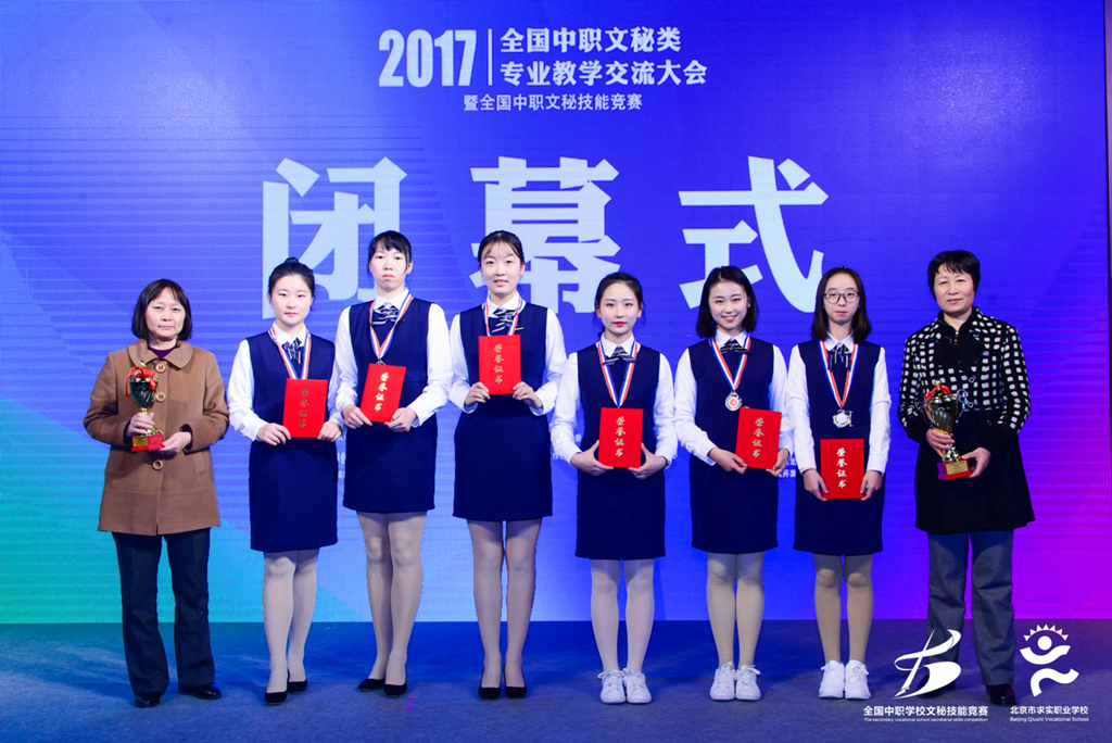 11月18日到20日,全国中等职业学校文秘专业教学交流大会暨全国中等职业学校文秘专业技能竞赛在北京求实学校举行。我校代表队在现代服务系王祥副主任的带领下,赴京参加了本次比赛。经过奋力拼搏,学校文秘教研室3位指导教师携6名参赛选手获得文秘速录技能竞赛团体二等奖、文秘专业技能竞赛团体三等奖;王加慧同学获得文秘综合技能奖,并在多媒体制作与演示项目摘得桂冠;速录竞赛组刘家乐、王雨婷同学获得个人二等奖,袁婧珺同学获得个人三等奖;文秘竞赛组王加慧、邱梦琳、仲华同学获得个人三等奖。