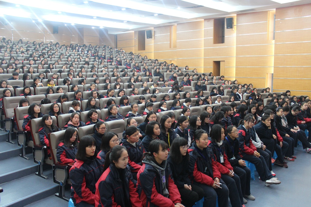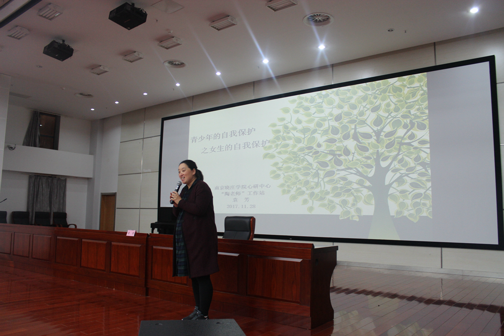 为了加强学校女同学的心理、生理健康教育和提高女生的自我保护知识,11月29日晚,我校学生工作部心理健康教育中心特邀南京市中小学生心理健康援助中心——“陶老师工作站”面询专家袁芳老师,开展了以“女生自我保护”为主题的青春期教育讲座。17级女生共400多人聆听了这次特殊而重要的一课。
