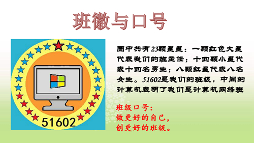 在初赛“班级风采展示”中,各班级通过精心准备的幻灯片向大家介绍了班级制度建设、班级特色文化、宿舍文化建设及班级活动展示等情况。其中,1601班和1701班的幻灯片充分体现动漫班的特色,而1704班则用简单的几笔设计出了精美又饱含深意的班徽。