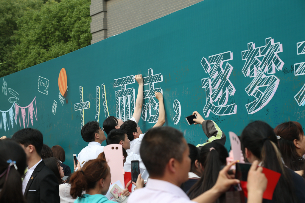“捍卫神圣宪法,维护法律尊严;履行公民义务,承担社会道义……”670多名年轻而火热的心,面对国旗进行了庄重的成人宣誓,声声誓词,镌刻其心。学校领导和嘉宾为他们颁发了成人纪念册,留住这最美的成人记忆。最后,全场挥舞着国旗,在校合唱团的带领下齐唱《我和我的祖国》,全体同学伴着歌声依次走过成人门,在“十八而志,筑梦未来”的签名墙上庄重地写下自己的名字,承诺未来,践行致远。
