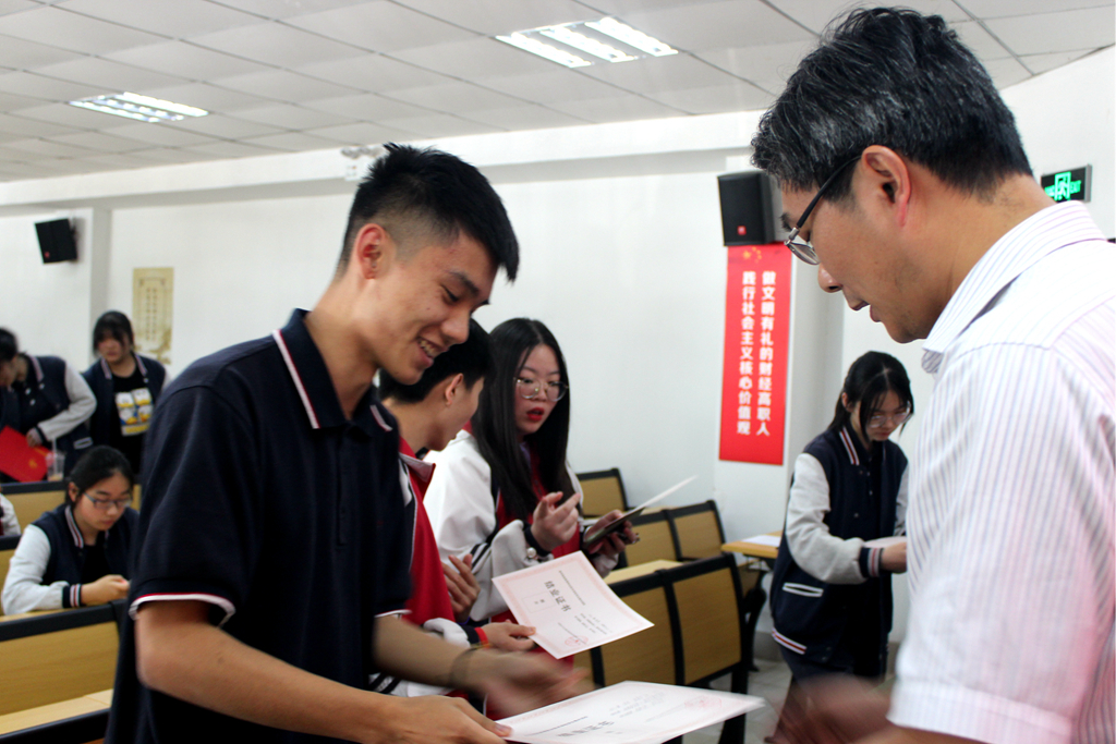 典礼开始,陈副校长首先向组织与开展第43期团校的老师和同学们表示感谢,并为本次团校顺利结业的29名学员们送上了祝贺。接着,陈副校长对本次团课课程安排表示赞赏,他称赞本次团校培训内容多样、形式创新、紧跟了时代的潮流,为广大学员在班、在校如何学习生活指明了方向,打好了基础。同时,他也鼓励所有在场的同学们,希望大家可以坚定信念,树立自己的理想;在学习上能够勤奋刻苦,不畏艰难;在生活中能做到求实务真,踏实走好每一步,做自己力所能及之事。最后,陈副校长和陆副书记为每一位通过团校考核的同学们颁发了结业证书。