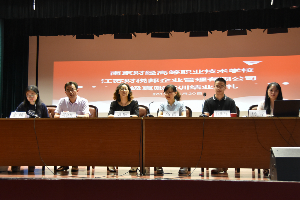 6月20日,我校2015级真账实训结业典礼在莫愁路校区隆重举行。学校副校长刘辉、会计系主任周会林、现代学徒制项目具体负责人金兢老师、江苏正保财税邦公司经理高霞、企业运营总监杨青、企业培训老师江海洋出席了本次结业典礼。典礼由金兢老师主持。