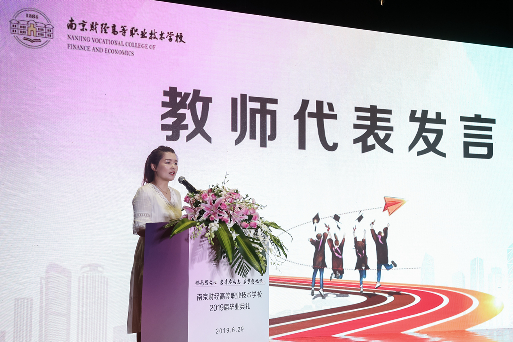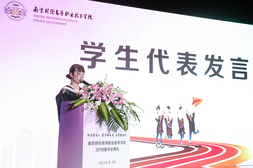 接着,毕业生代表和毕业班班主任代表分别上台发言。会计系51408班刘峙宇同学从成长、感恩、道别三个方面深情回忆了在学校难忘的学习生活,并代表全体毕业生感恩母校的教育和培养。金融系施慧娟老师希望同学们永远满怀自信,做好人生事业的长远规划;继续完善自我,做一个积极向上,脚踏实地的人,保持初心,勇往直前;继续关注和支持母校未来的发展,努力回报社会,为母校争光。