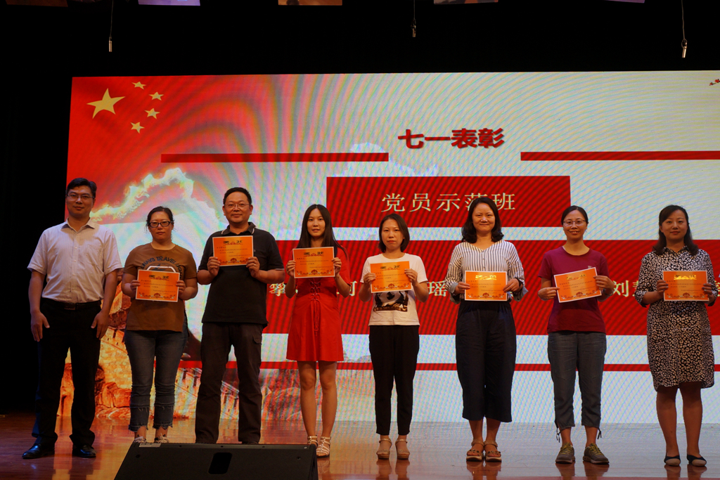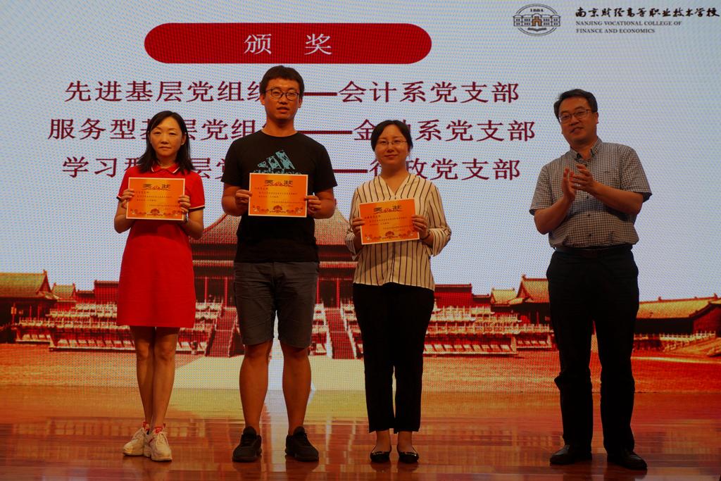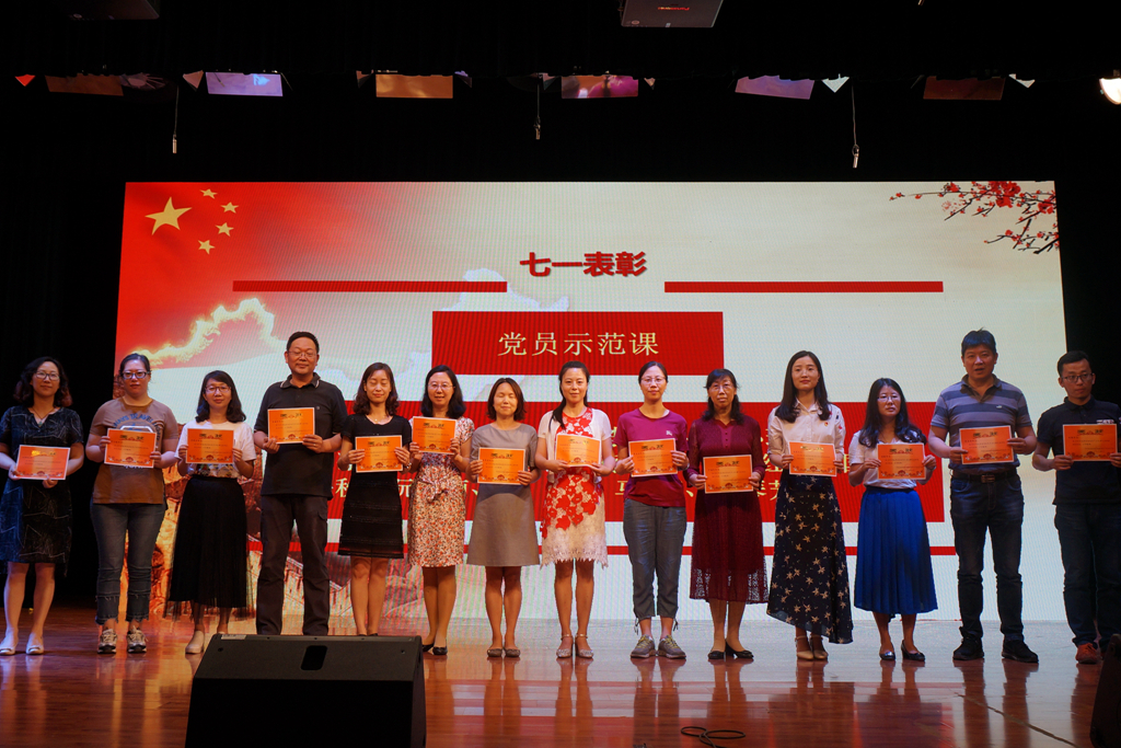 随后,仇书记宣读了学校“七一”表彰决定。会计系党支部获得学校先进基层党组织,金融系党支部获得学校服务型基层党组织,行政党支部获得学校学习型基层党组织,现代服务系党支部《凝聚党员向心力“五个一”工作法》和信息艺术系党支部《“交互式学习”党建工作法》获得学校优秀党建工作法。许洁等29位同志被评为“校级优秀党员”,姚峰等10位同志的岗位被评为“党员示范岗”,刘辉等17位同志所教授课程被评为“党员示范课”,吕志攀等7位同志所教班级被评为“党员示范班”。学校全体领导班子为获奖集体和个人颁奖。