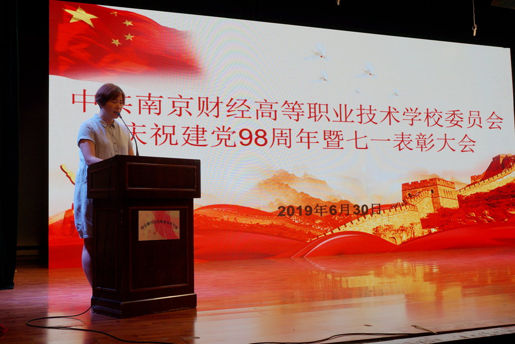 6月30日下午,我校庆祝建党98周年暨“七一”表彰大会在莫愁路校区报告厅隆重举行。会议热烈庆祝中国共产党成立98周年,并对一年来学校党建工作进行总结,对下半年党建工作进行部署动员,表彰了一批先进党支部和优秀共产党员,鼓励全体党员在办好人民满意教育中创出新业绩,做出新贡献。全体校领导和教职工党员参加了大会。会议由党委副书记、纪委书记仇国宏主持。