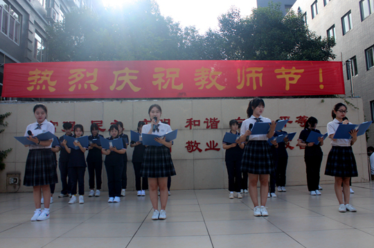 9月9日,在莫愁路校区的晨会上,校团委组织表演了感恩教师的朗诵节目,台上表演的同学饱含深情的声音,引起了全校同学的共鸣。