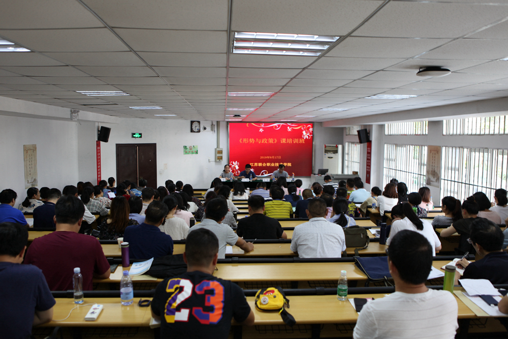 2019年9月17日至18日,为深入学习贯彻习近平总书记在学校思想政治理论课教师座谈会上的重要讲话精神,做新时代优秀的思想政治理论课教师,我校承办了江苏联合职业技术学院思想政治理论课教师《形势与政策》课程培训活动。学校思政课教师、部分学生工作人员同来自全省93所兄弟学校的思政课教师一起参加了培训。