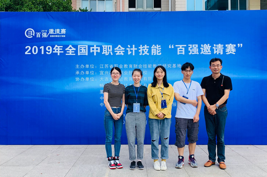 9月21日,我校会计系训练队毛文清、刘心雨和梁春林三位同学在系主任周会林以及班主任骆远婷老师的带领下,赴宜兴参加2019年全国中职会计技能百强邀请赛,并在比赛中取得团体一等奖。