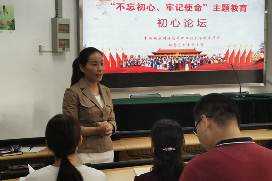 姜峰副校长发表了对“初心”的理解及认识的讲话。他说,对初心的认识,第一是诚心。诚心就是初心,是带着一颗真诚地对党的认识、对党的尊重、对党的感恩的心,我们选择了成为一名中国共产党党员。我们对待党的事业要像当初选择入党的时候那样虔诚、真挚,在任何艰苦困难时刻都不能丢失和放弃。第二是忠心。多年的党员生活,大家都在尽职尽责地工作,踏踏实实地生活。如果在未来的某个时刻动摇了,那是对自己的背叛。第三是恒心。作为教育工作者,一定要把党员的榜样工作做起来,这需要一个长期的过程。我们要有恒心作为支撑,支撑一个党员在职业教育战略上走好、走稳。第四是决心。决心不是一时的冲动而是一种绵长的能量,时刻警醒我们在任何时候以一个党员的标准,以一个示范的表率展示在周围群众、学生和家长面前。第五是信心。我们有信心为系部的工作,为事业的发展,为整个学校的发展做出突出的贡献。