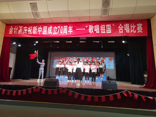 会计系组织了“爱国歌曲合唱比赛”。同学们用饱满积极的情绪、嘹亮激情的歌声演绎了《我和我的祖国》、《歌唱祖国》等曲目,感染了现场的每一位听众,唱响了全体师生对新时代祖国的美好祝福。