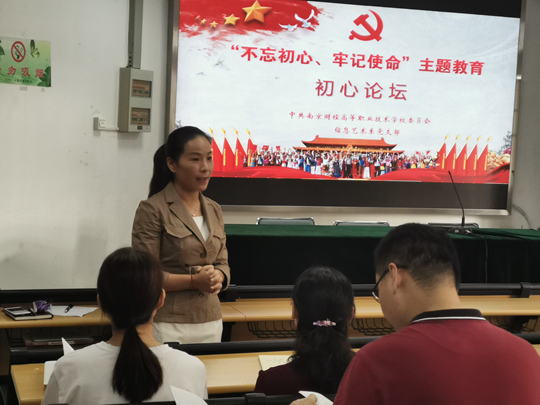 9月下旬,校党委组织开展了“不忘初心、牢记使命”主题教育“初心论坛”研讨。各支部党员同志结合岗位实际,谈认识、谈体会,将自身角色由主题教育的参与者向组织者和推动者转变,切实增强政治自觉、思想自觉和行动自觉。大家回顾了在党领导下的成长经历,深入剖析了加入党组织的初衷,并对今后应该怎样更好地为党工作,如何不忘初心,始终保持昂扬向上的精神状态,永远做一个合格的共产党员等问题进行了深刻思考。崔琪书记在论坛上发言,提出要保持初心,以身作则;学习理论,真信笃行;深入一线,了解实情。