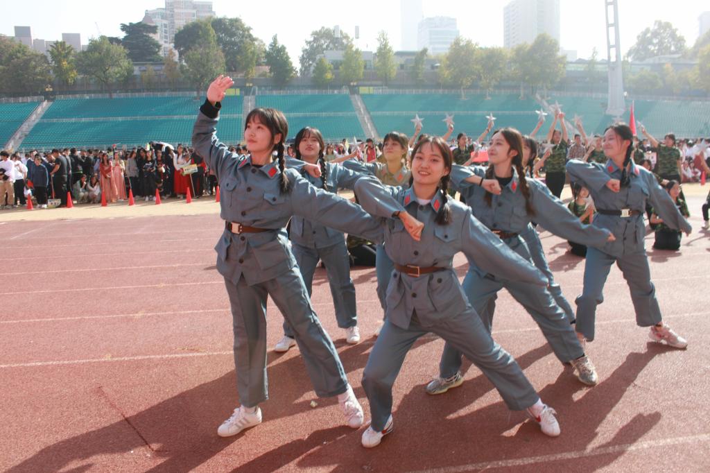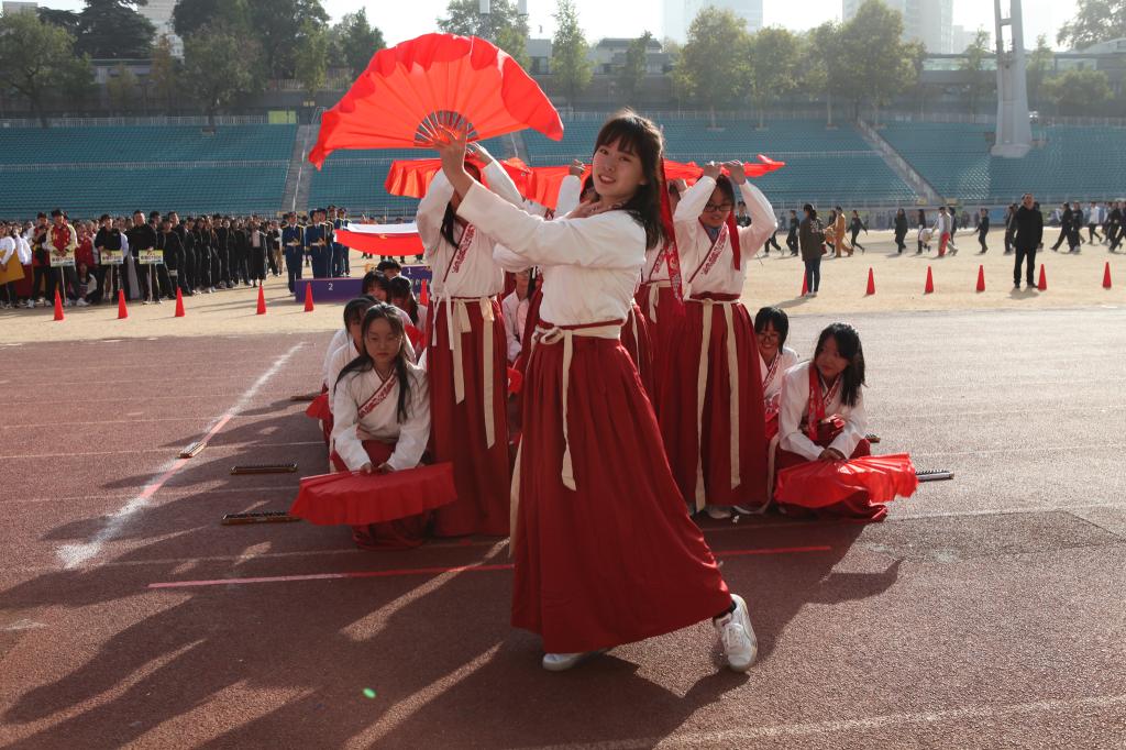 会计系1711班利用点钞钞票贴出了“明日之子”的班级口号,现代服务系1816幼管班级跳起了“羊羊舞”,信息艺术系多个班级玩起了cosplay,令人印象深刻,大家在充分展示了班级风貌的同时,又发挥了创意,体现出专业特色。金融系1604班将校服的颜色和国旗联系起来,贴上五角星,同学们化身为一面面“会动的小国旗”,围绕在巨大的国旗周围,歌颂新中国70华诞。除此之外,还有多个班级穿上汉服、上世纪80年代的服装,跳起了舞蹈。通过传统与时尚相结合,传承与创新相交融,同学们用想象和创造把青春炽烈的热情、爱国爱校的情怀、积极向上的精神和新时代职校生的风采尽情地展现出来,赢得了现场的阵阵掌声。入场式结束之后进行了升旗仪式,并由陈浩副校长宣布2019年秋季田径运动会正式开始。