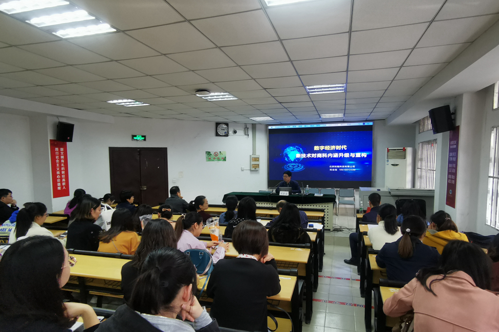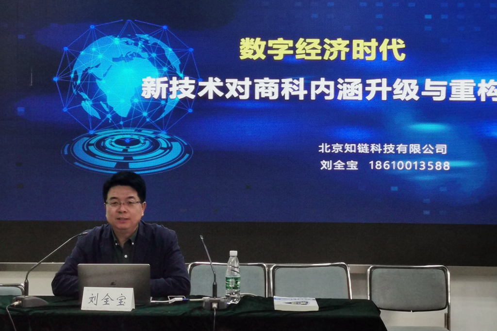 接着,刘全宝总裁作了题为“数字经济时代新技术对商科内涵的升级与重构”区块链讲座。讲座主要从教育与宏观背景、商科教育现状和变化、专业变革、行动建议等四个方面分析了区块链与会计、金融、工商、营销等专业的融合新趋势与必要性。刘全宝总裁在讲座中表示,当今世界的贸易战是教育战,教育变革是新趋势,教育要面向未来,强化学校专业纵深,增强人才培养实力,拓展学生就业方向。他分析到,目前高校人才培养结构失衡——两财一贸“滑铁卢”、重商轻工、低端人才过剩,紧缺能够参与企业战略管理、精于专业内涵深化、拥抱科技进步的中高端人才;学校教育要探索产教融合,把企业搬进校园,重点发展工管一体平台;区块链技术作为一种分布式数据存储、点对点传输、共识机制、加密算法等计算机技术的新型应用模式,是世界级产业协作的基础,人才未来竞争的高块,是学校对未来教育探索的新支点;金融科技人才会技术是基本,懂产业是基础,重应用是必须,宽口径是拓展,深就业是能力需求;学校在课程特色上要与时俱进,将金融科技业务搬进校园,强化校企合作,提升培养实力。最后刘全宝总裁指出,教育是面向未来的教育,学校要充分发挥老师在教育中的主要作用,提高学生思维能力,增强竞争优势,面对新技术,没有怀疑、没有迟钝,唯有拥抱变化。