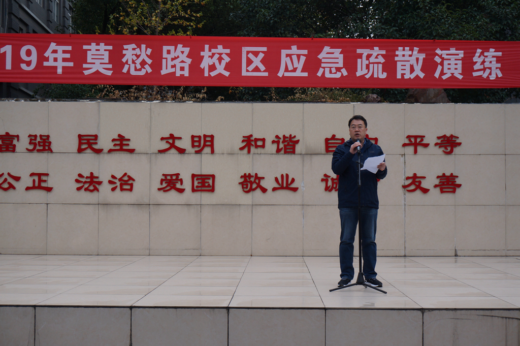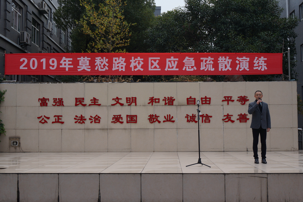 为培养学生终身受益的应急处置习惯,提高应对校园突发事件的应急处置能力,11月18日,我校在莫愁路和江宁校区分别举行了2019年应急疏散演练。