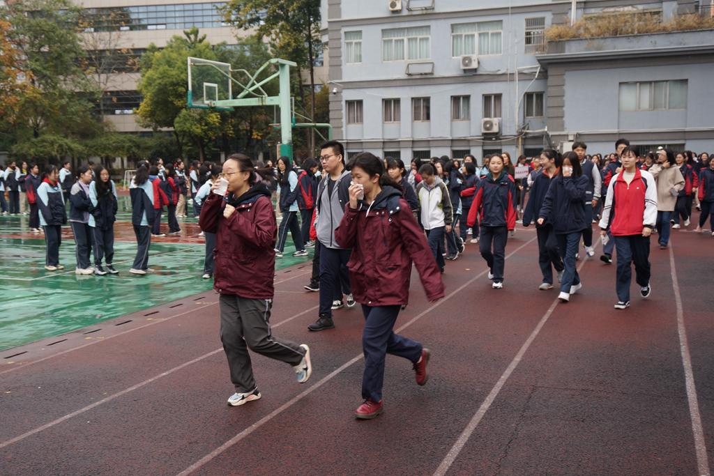 同日下午3点,江宁校区也举行了应急疏散演练。听到疏散信号后,全体师生按照既定路线,5分钟内安全、快速、有序地疏散到安全区域(运动场)。演练总指挥仇国宏副书记对演练活动进行了点评和总结。“每个人的生命只有一次”,她要求全体师生能够认真对待疏散演练,“每一次演练都应成为大家获得安全成长、培养求生能力的有效途径。”
