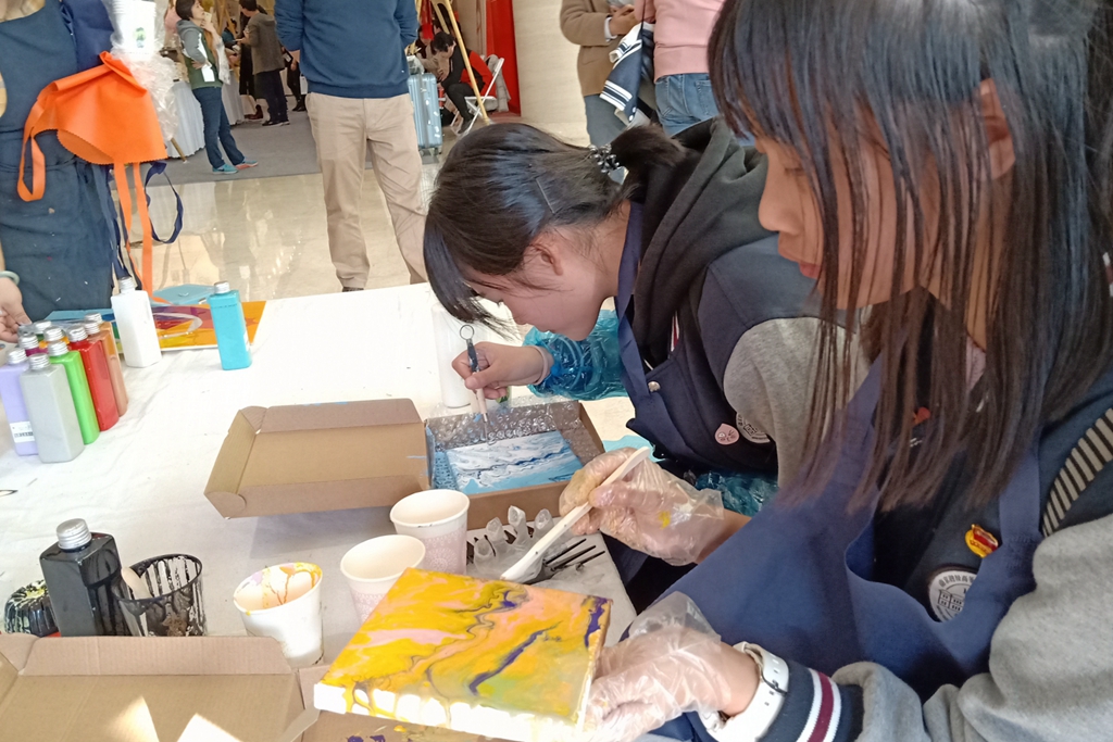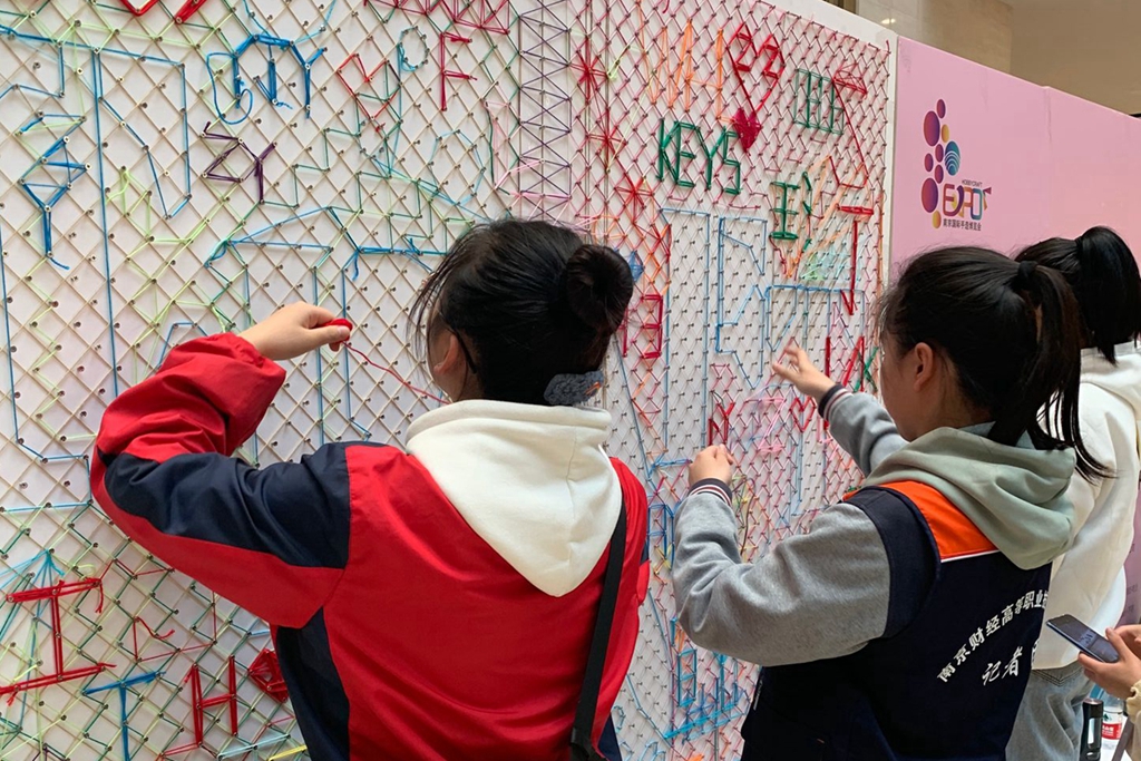 活动现场,同学们兴致高昂,沉迷于一个又一个的艺术作品中,纷纷拿出手机拍摄下了精美的作品。在细细品味手工带来的魅力同时,同学们更惊呼传统工艺的多样性和创造性。在人流涌动的展览馆内,部分同学还现场与手工艺人们进行了交流互动,亲自动手实践,学到了很多环保工艺品的制作方法。同学们在实践中感受到艺术的魅力,原来艺术可以如此贴近大众生活。
