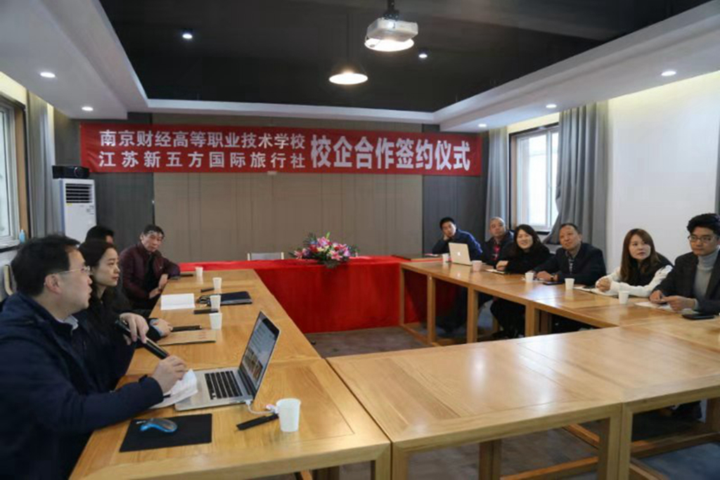 11月22日上午,我校与江苏新五方国际旅行社签约仪式在江苏新五方国际旅行社举行。学校姚峰校长、高磊副校长、新五方国际旅行社公司董事长汪洋、总经理赵建兰及相关部门负责人出席了签约仪式。