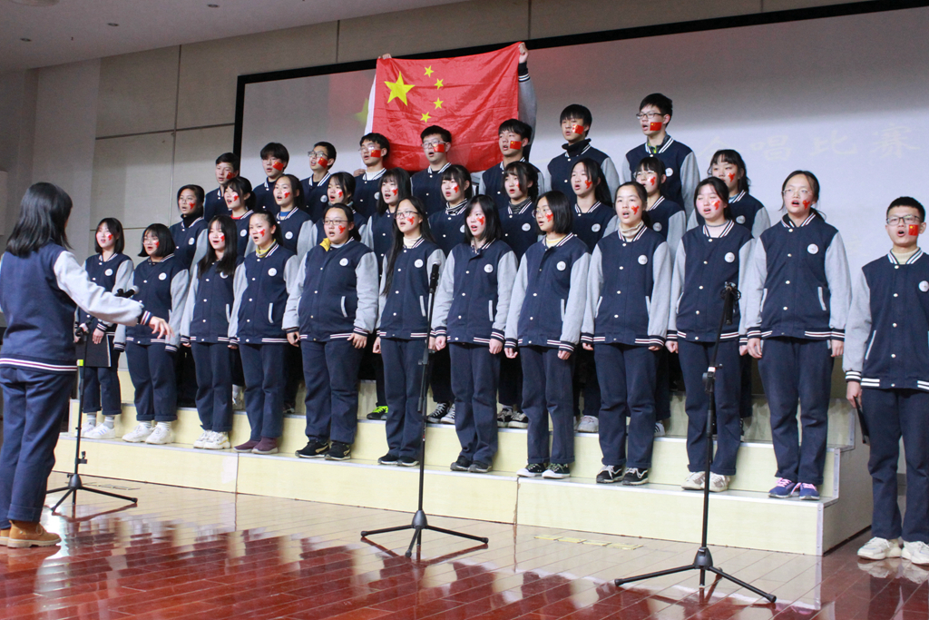 1901动漫班的同学们挥动着小国旗,合唱了《国家》,以恢弘的音乐、平实的歌词道出了国与家的深厚情感;1915会计2班同学们身穿清新的学生装,以《我的未来不是梦》为主题,用毛笔书写了一个“梦”,用深情的演绎让现场弥漫着浓郁的爱国情;1910金融3班的同学们用一首经典歌曲《团结就是力量》表达了先辈们团结抗日的心声;1921幼管1班演绎的《龙文》以柔克刚,表演融入舞蹈,完美地将中国风谱曲与汉服、歌声及朗诵相结合,可谓水到渠成……。最后,合唱比赛在1923幼管3班的《赞赞新时代》中圆满结束。