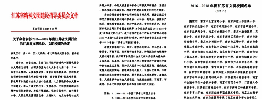 近日,江苏省精神文明建设指导委员会下发《关于命名表彰2016-2018年度江苏省文明行业和江苏省文明单位、文明校园的决定》(苏文明委〔2019〕15号)。根据该决定,我校被授予2016-2018年度“江苏省文明校园”荣誉称号。