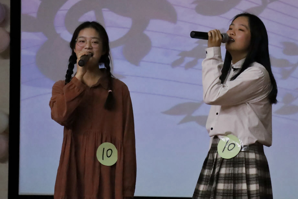 12月23日下午,伴随着主持人激情的开场白,以及现场钢琴与小提琴的伴奏,江宁校区十佳歌手决赛也正式拉开了帷幕。十五位晋级选手的表演精彩绝伦,有感叹青春岁月的《时间煮雨》,有婉转细腻的《青花瓷》,也有佯装潇洒肆意却又纠结矛盾的《说散就散》......比赛中场还特邀钱艺欣同学带来了一首《嗜好》,动听的歌声舒缓了紧张的比赛气氛。在此次决赛中,除了有美妙的歌曲演唱,还有伴奏、伴舞表演。4号选手杨雨欣的舞伴随着《Wonderful U》娓娓动听的歌声,演绎了一段柔美的舞蹈,传递了美好的友情;5号刘景怡选手的舞伴带来了一段热烈的舞蹈表演,尽显张扬活力;7号选手邀请了特别嘉宾现场琵琶伴奏……。观众们也是兴致极高,纷纷举起闪光灯,挥舞荧光棒,梦幻又俏皮。