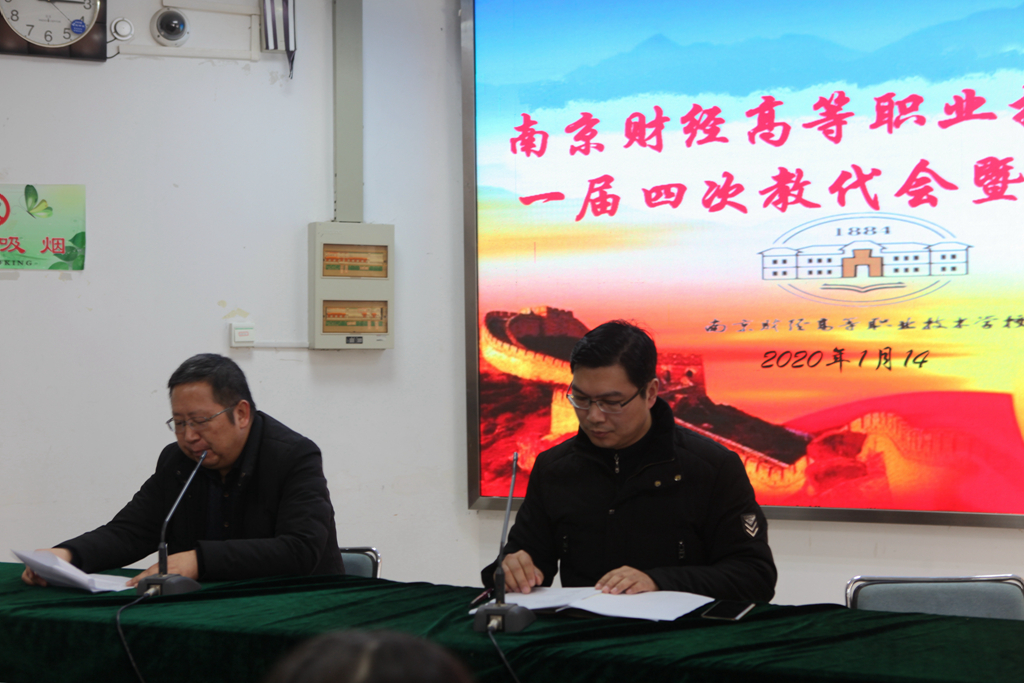 1月14日,我校在莫愁路校区隆重召开了学校一届四次教师代表大会暨工代会大会。本次大会由工会主席、副校长陈浩主持。中层以上干部列席会议。