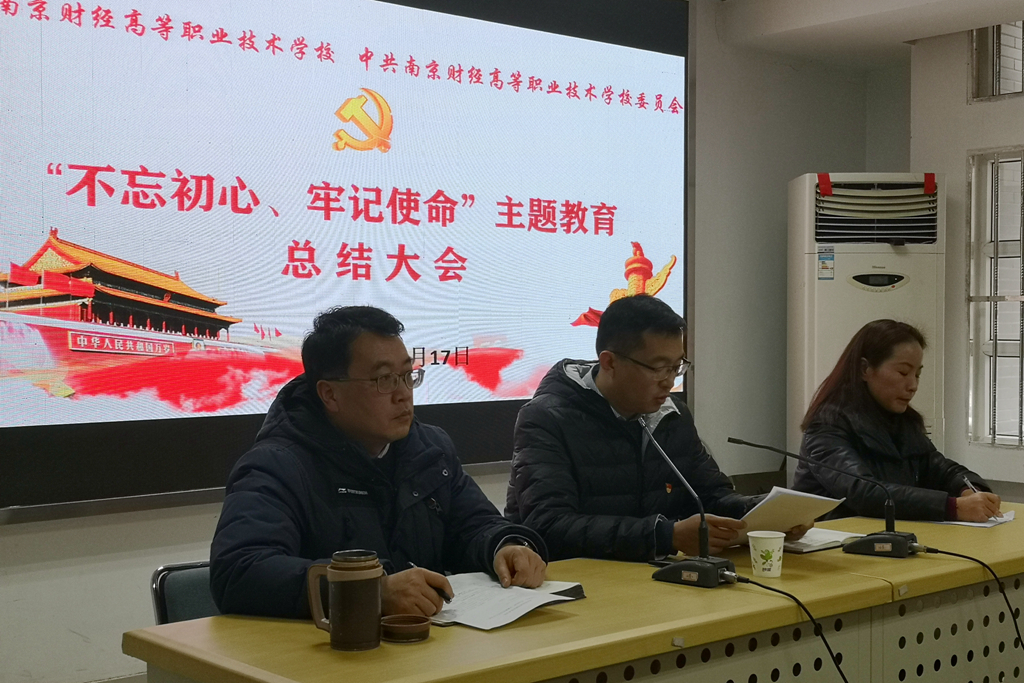2020年1月17日下午,我校党委按照上级部署,在莫愁路校区召开“不忘初心、牢记使命”主题教育总结大会。市委教育工委主题教育第三巡回指导组孔锦亮同志到会指导。全体党员参加了大会,姚峰校长主持会议。