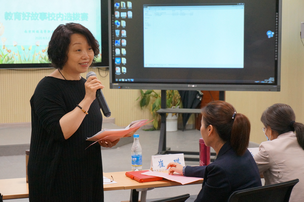 评委们对选手们的演讲给予了充分的肯定,同时也提出了一些中肯的建议。胡惠芳老师从故事的题目撰写、典型事例运用以及图片、视频、配乐的配合等各方面做了专业地点评,希望老师们在演讲时要学会沉浸其中,才能唤起观众的共鸣。选手们认真聆听,受益匪浅。