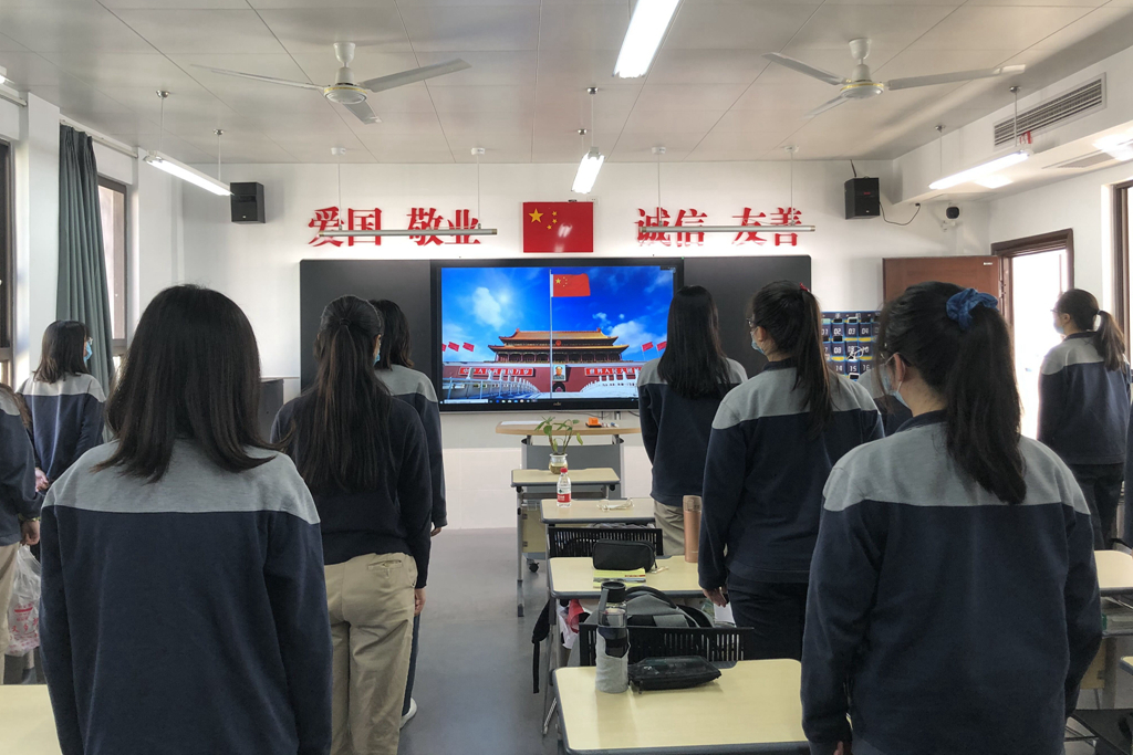 为响应疫情防控常态化下不聚会不扎堆的要求,5月13日上午,我校举行了一场特别的线上升旗仪式。在学校信息中心和学生工作部协同合作下,姚峰校长在录播室直播讲话,各校区同步网络云平台实况收看。通过直播,同学们在各自教室观看了这场“云升旗”仪式。