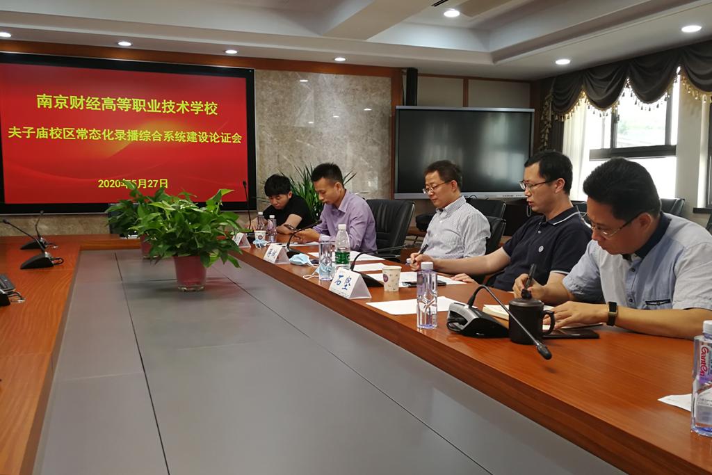 学校于5月27日下午在夫子庙校区四楼会议室举行南京财经高职校夫子庙校区智慧教室综合系统建设方案论证会,高磊副校长、信息艺术系薛飞主任、张镭镭副主任、信息中心吴支训副主任以及三家设计单位参加会议。论证会邀请了中国药科大学教务处陆冷飞科长、南京中医药大学蒋斌工程师和南京工业职业技术学院信息管理处石坚副处长进行建设方案论证。论证会由学校信息中心陈坚主任主持。