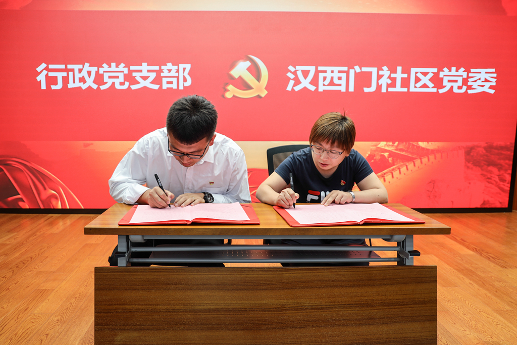 接着进行的是党建共建签约仪式。为更好加强基层党建工作,以党建工作凝聚人心,增强力量,促进各项业务工作发展,学校党委与中国银行南京河西支行党总支、信息艺术系党支部与南京太平天国历史博物馆党支部、现代服务系党支部与晓庄学院实验幼儿园(机关二幼)党支部、行政党支部与汉西门社区党委、会计系党支部与江苏正保安盛财务顾问有限公司党支部分别签订了合作共建协议。签约仪式掀开了学校与企事业单位党组织“结对共建”新篇章。双方共建“红匠孵化站”,用工匠精神引领师生成长,用党建文化为工匠铸魂,在构建资源共享、优势互补、共同提高的党建工作新格局方面迈出了新的重要一步。