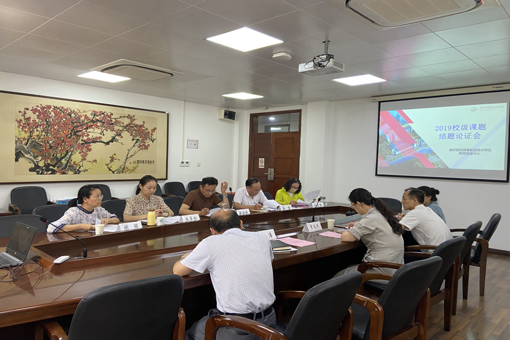 7月16日下午,学校在莫愁路校区图书馆二楼教师沙龙,举行了南京市教育科学“十三五”规划课题结题鉴定会。南京高等职业技术学校张荣胜校长、江苏联合职业技术学院徐伟处长、南京市教育科学研究所何炳均副所长、南京市职教(成人)研究室孔晓华副主任、南京市教育科学研究所研究员邓大龙老师亲临现场进行论证鉴定。本次会议由教师发展中心贾凌燕副主任主持,课题主持人和课题组成员参加此次会议。