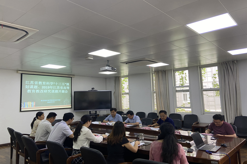 此前,6月22日下午和7月6日下午,学校先后两次邀请专家就江苏省教育科学“十三五”规划2020年度重点资助课题《基于核心素养的五年制高职数学选修课程PBL的应用研究》、2019年江苏省高等教育教改研究立项课题《现代学徒制教学模式下五年制高职会计专业学生学习成效评价的实证研究》进行了开题论证。南京大学教育研究院孙俊华副教授、南京市职教(成人)教研室秦伟主任、南京市教育科学研究所左坤所长、江苏联合职业技术学院徐伟处长、江苏省教育科学规划领导小组办公室周英俊项目主任、南京市教育科学研究所刘权华科研员亲临现场进行论证指导。参加论证会的还有学校陈浩副校长、高磊副校长、课题主持人和课题组成员。陈琴芳老师和赵敏老师作为课题主持人,分别进行了汇报。专家组对两项课题给予了充分的肯定,并提出了建设性意见。