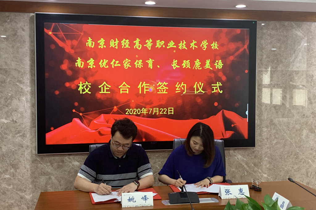 7月22日上午,我校成功加入南京市婴幼儿早期发展行业协会,并与南京优仁家保育、长颈鹿美语签订校企合作协议。学校姚峰校长、陈浩副校长、高磊副校长以及南京市婴幼儿早期发展行业协会会长刑丽、宝镇教育运营总监张惠、公共事业部经理卢晶等出席了此次仪式。会议由现代服务系杨宇净主任主持。