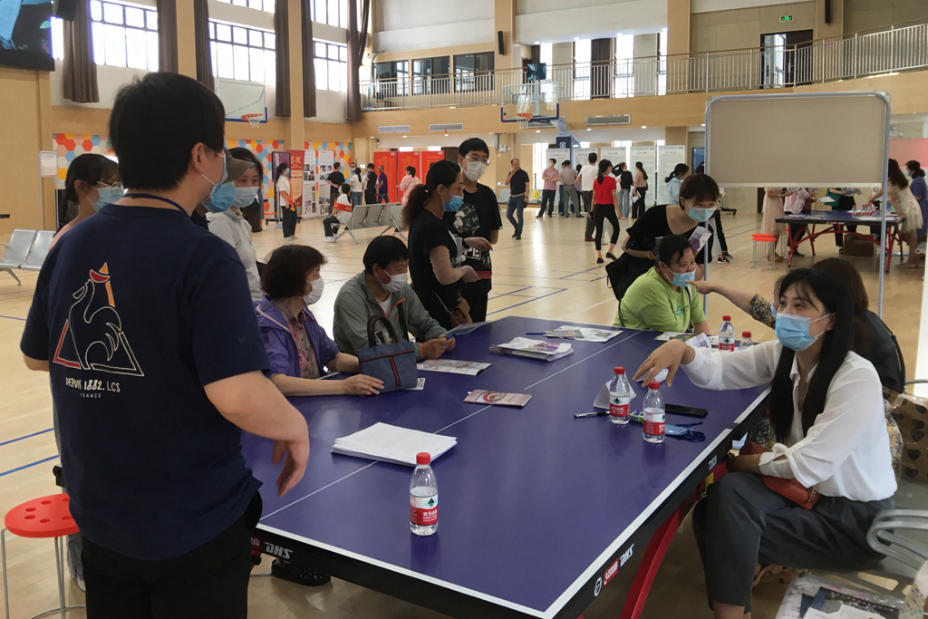 由于疫情影响,今年的招生咨询会实行实名预约制,考生和家长需在网上进行预约后凭预约信息和中考准考证照片至学校参加线下咨询。虽然入场仍需按照防控疫情流程规定出示苏康码,体温检测合格并全程佩戴口罩,但依然不减家长考生与老师们的交流热情,不少家长和考生从周边城市专程赶来,会场井然有序。