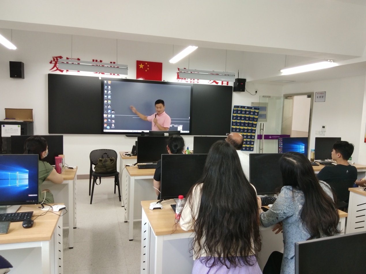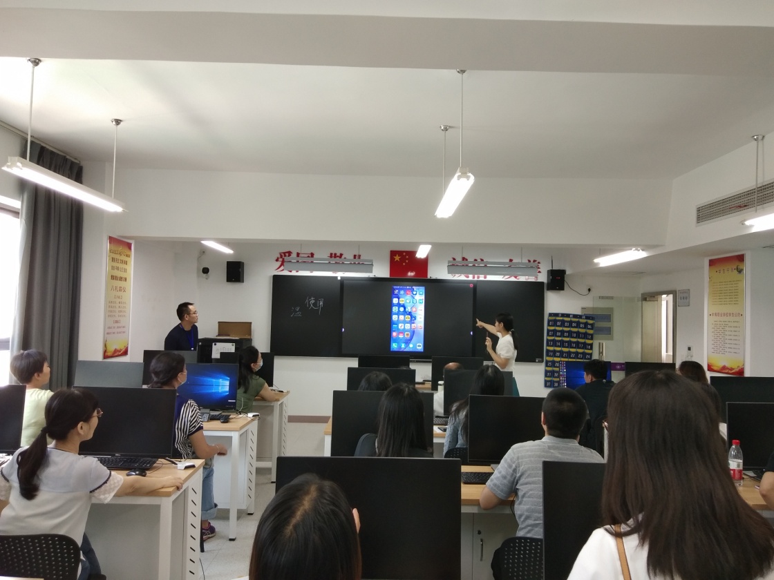 在新学期即将开始之际,为进一步提高我校老师现代教育技术水平,更新教学观念,改进教学方法,提高教学效果。2020年9月3日下午信息中心在夫子庙校区组织开展现代教育技术应用培训会,培训会共分两场,由信息中心吴支训副主任主持,高磊副校长与会指导,智慧教室厂家培训讲师到场进行讲解和服务,共有80多名老师参加。