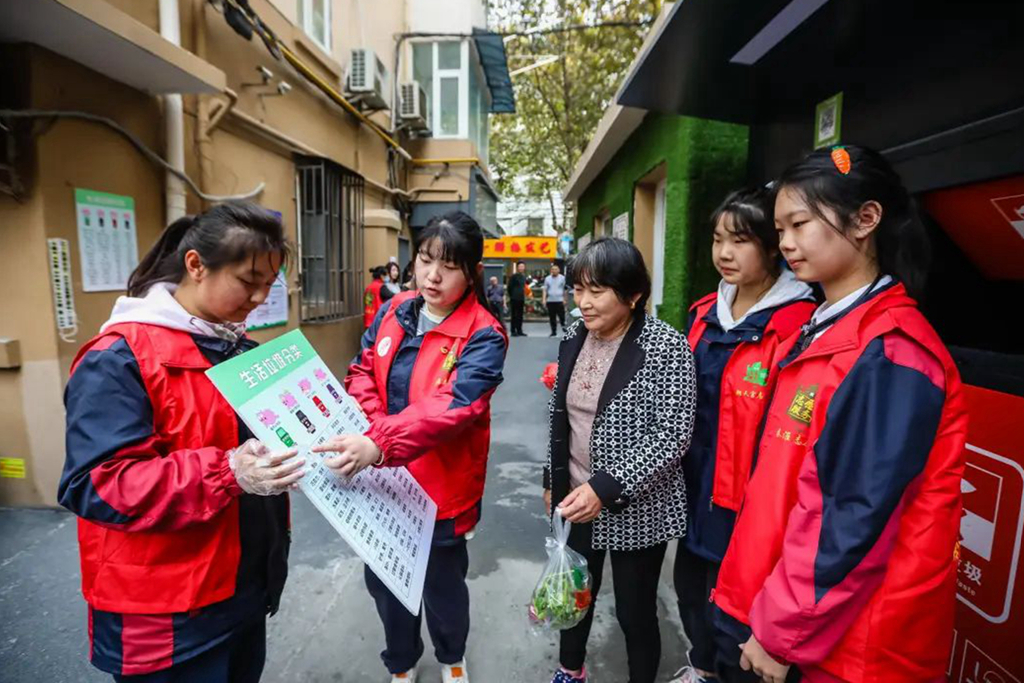 行政党支部和汉西门社区党委共同开展了以“垃圾分类”为主题的学习实践活动。现场,学校的师生们身着红色志愿者服装上了一堂生动的垃圾分类课程。社区党委书记李莉向大家介绍了社区自开展垃圾分类工作以来的做法和经验,并给大家普及了垃圾分类知识。师生们在现场耐心地指导着居民们,并手把手帮助他们把垃圾放入相应的垃圾箱中。活动让师生们对于垃圾分类知识有了更进一步的了解,也加强了学校党支部与汉西门社区党委之间的联系。