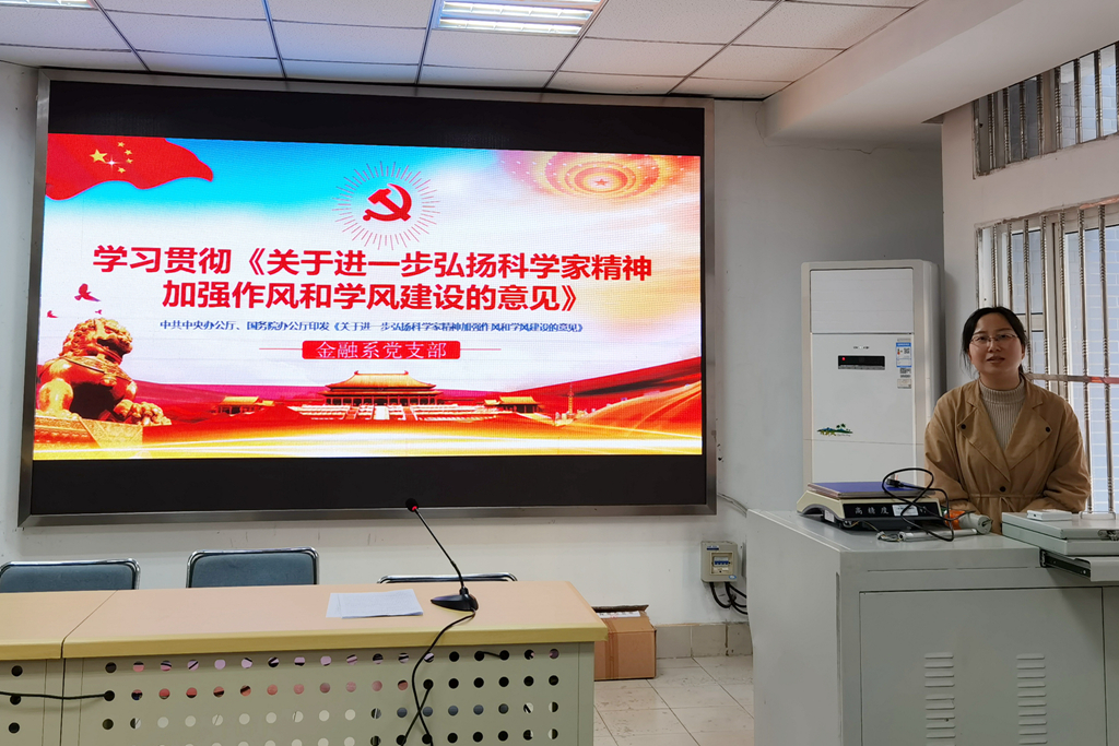 金融系党支部承接上次组织生活会的内容,与全体党员同志共同学习了中共中央办公厅发布的《关于进一步弘扬科学家精神加强作风和学风建设的意见》文件,并具体围绕《意见》的总体要求、大力弘扬新时代科学家精神、加强作风和学风建设、加快转变政府职能、加强宣传、保障措施等六大部分展开讨论学习。在理论学习的同时,党员们还结合实际,从《我们身边的科学家》这个题目出发,分享了2020年“十大最美科技工作者”(江苏卷)的先进事迹,同时还对“中国活体肝移植开拓者”王学浩院士和“国宝守护人”岱山实验小学校长郭卫星的先进事迹进行了详细介绍。活动最后,全体党员扫描二维码参加了知识自测,检测主题活动开展以来的学习效果。