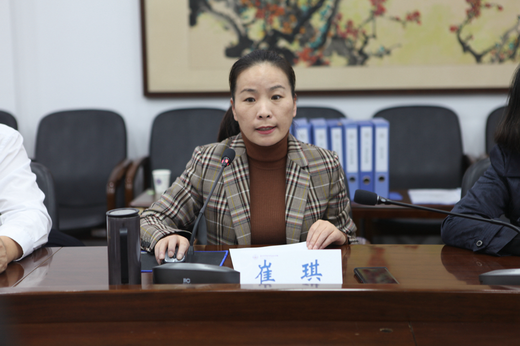 学校党委崔琪书记首先代表学校对评估组一行的到来表示欢迎,随后崔书记做了题为《守教育报国初心,担筑梦育人使命》的师德建设工作专项汇报。她从“明德、养德、护德、成德、立德”的五大行动,完整呈现了学校在“大党建”体系统领之下,构建的“正向引导+文化融入+长效机制”的师德师风建设体系。