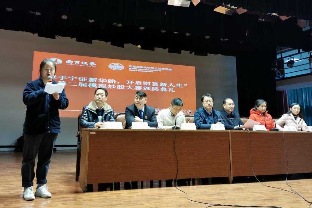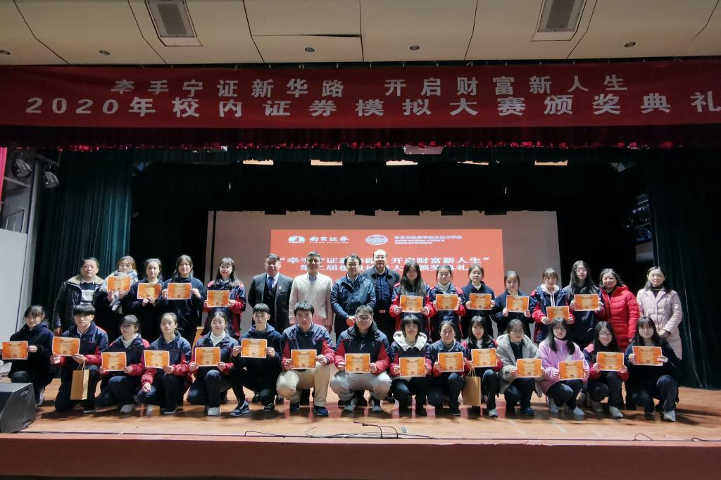 2020年11月,我校与南京证券共同举办了第二届“牵手宁证新华路,开启财富新人生”模拟炒股大赛,经过为期一个月火热的比赛,最终落下帷幕。12月14日下午3点,学校在莫愁路校区举办了闭幕仪式。学校姚峰校长、孙荣宝副校长和南京证券新华路营业部总经理钱英皓、市场一部主管杨涛共同出席了此次闭幕式。仪式由金融系主任陈阳主持。